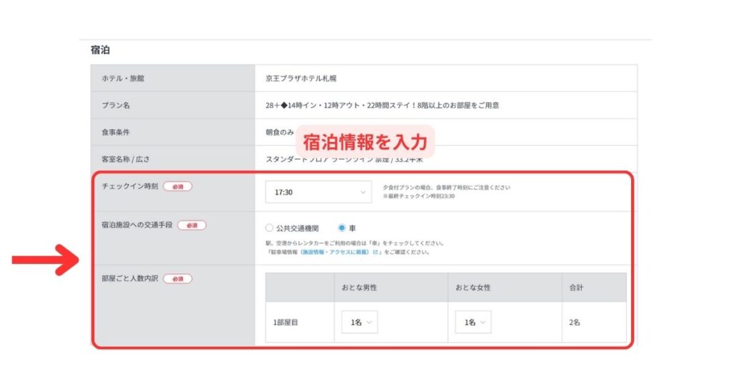 宿泊情報を入力