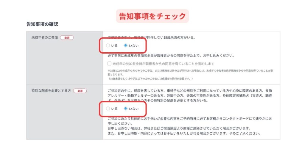 告知事項をチェック